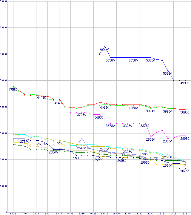 | HDD 500GB以上の最安値推移 | | | (2006年6月22日~2007年2月1日) |