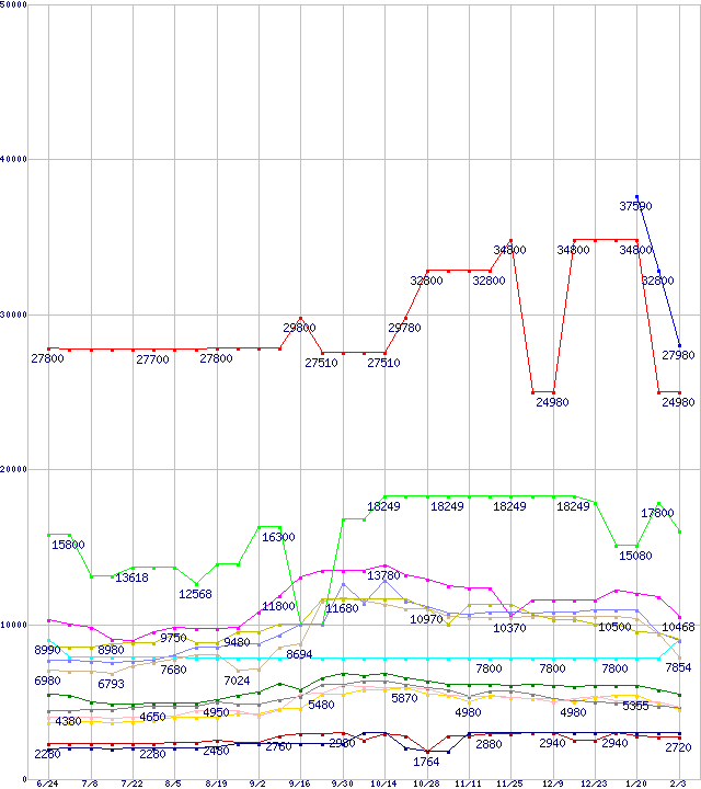 メモリ主要製品の最安値推移