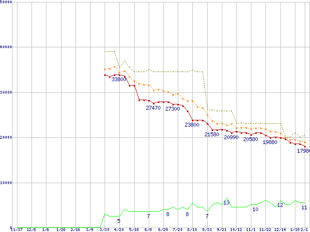 | WD5000KS (500GB)の価格推移 | | | (2005年11月17日~2007年2月1日) |