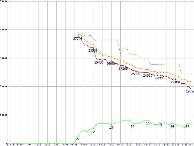 | ST3500630A (500GB,16MB)の価格推移 | | | (2005年11月17日~2007年2月1日) |