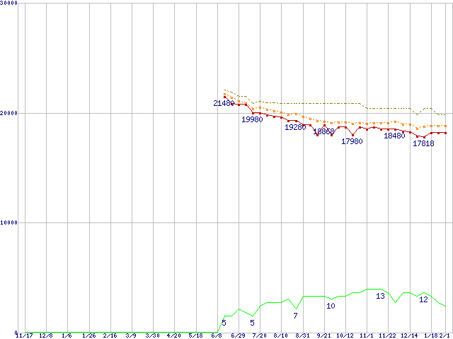 | WD740ADFD (74.3GB)の価格推移 | | | (2005年11月17日~2007年2月1日) |