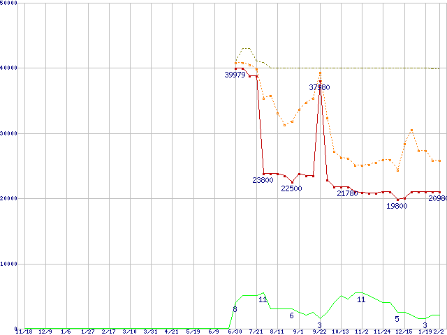 | Athlon 64 X2 4000+ (2.0GHz,L2 1MB×2)の価格推移 | | | (2005年11月18日~2007年2月2日) |