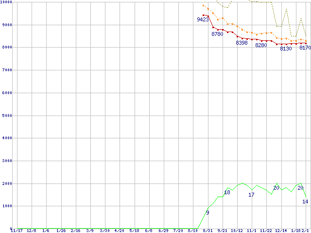 | HDT725025VLA380 (250GB,8MB)の価格推移 | | | (2005年11月17日~2007年2月1日) |