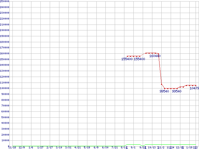 | Opteron 2220SE (2.8GHz) バルクの価格推移 | | | (2005年11月18日~2007年2月2日) |