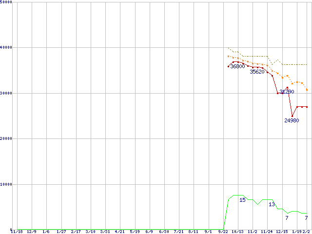 | Athlon 64 X2 5000+ (2.6GHz,L2 512KB×2) バルクの価格推移 | | | (2005年11月18日~2007年2月2日) |