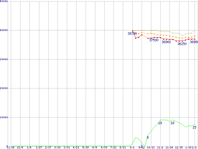 | Core 2 Duo T7200 (2.00GHz,L2 4MB)の価格推移 | | | (2005年11月18日~2007年2月2日) |
