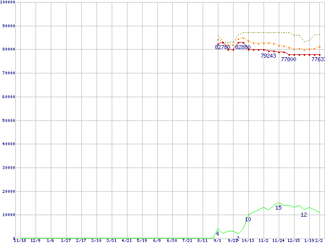 | Core 2 Duo T7600 (2.33GHz,L2 4MB)の価格推移 | | | (2005年11月18日~2007年2月2日) |