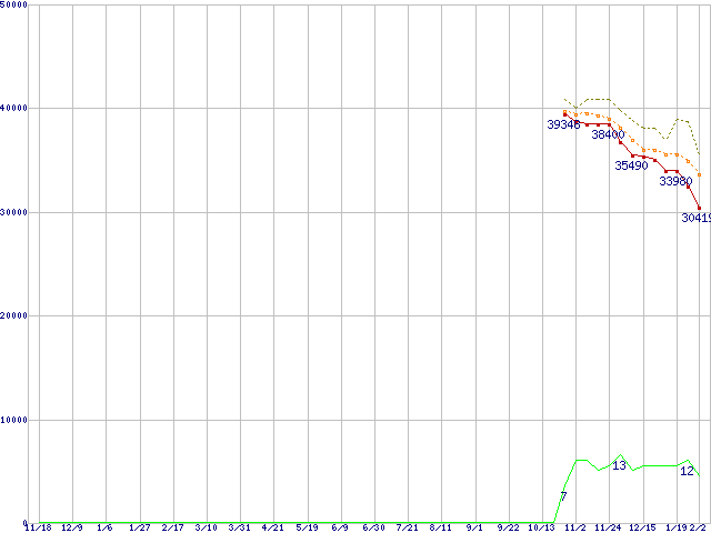 | Athlon 64 X2 5000+ (2.6GHz,L2 512KB×2)の価格推移 | | | (2005年11月18日~2007年2月2日) |