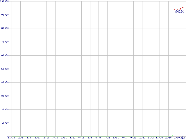 ※このグラフは過去のデータも税率5%相当に調整した税込み相当額のグラフです。 税率変更や、総額表示方式導入(2004年4月)の影響は除いています。 | | | ●凡例 | 最安値 (点線部は販売店未確認 または未調査) | 平均値 | 最高値 | ショップ数 |
