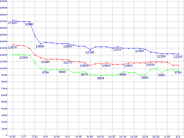 Socket AM2 (FSB 1000MHz)の最安値推移