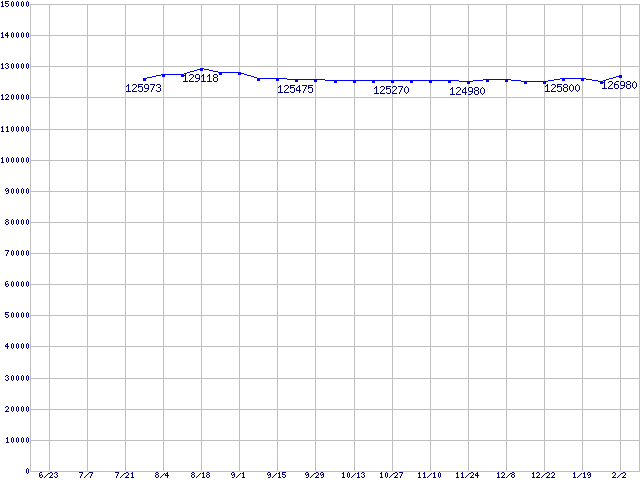 | LGA775 (FSB 1066MHz,L2 4MB,Dual Core,EM64T対応,TDP 75W)の最安値推移 | | | (2006年6月23日~2007年2月2日) |