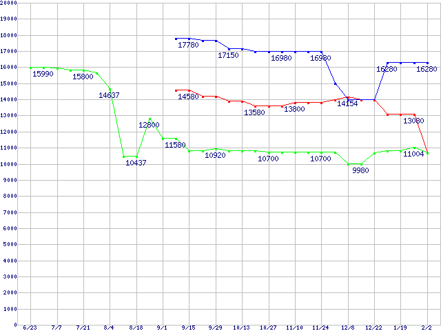 Core Duo向けSocket 478 (FSB 533MHz,L2 1MB)の最安値推移