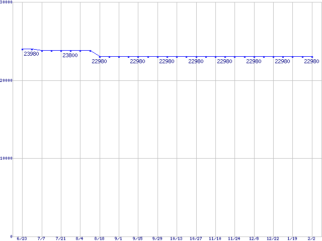 | Core Duo向けSocket 478 (FSB 667MHz,L2 2MB,Dual Core)の最安値推移 | | | (2006年6月23日~2007年2月2日) |