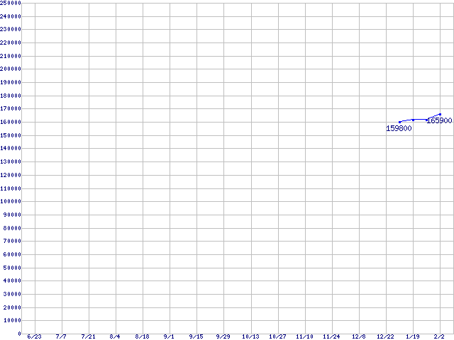 | LGA771(FSB 1333MHz,Quad Core,L2 4MB×2,TDP 120W)の最安値推移 | | | (2006年6月23日~2007年2月2日) |