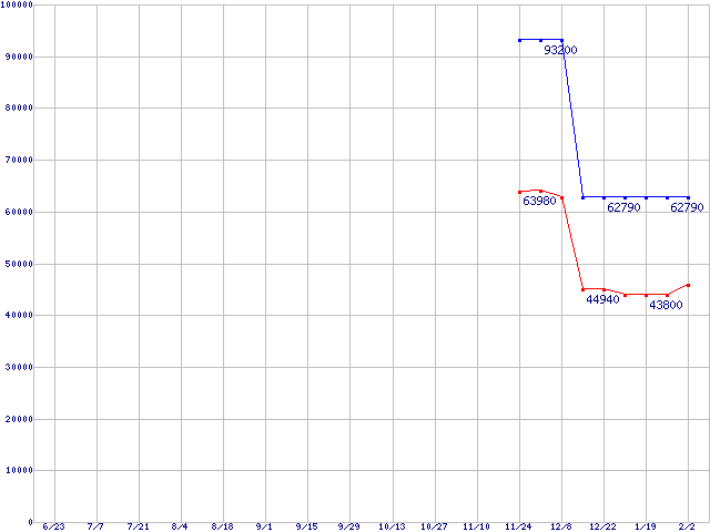 LGA771(FSB 1333MHz,Quad Core,L2 4MB×2,TDP 80W)の最安値推移