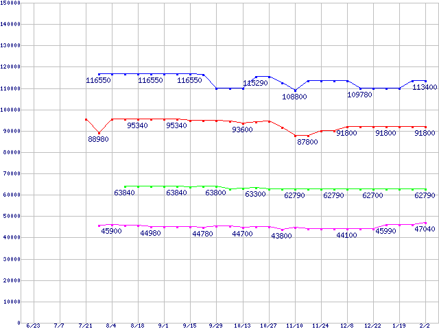 LGA771(FSB 1333MHz,Dual Core,L2 4MB)の最安値推移