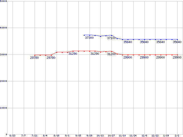 LGA771(FSB 1333MHz,Dual Core,L2 4MB)の最安値推移