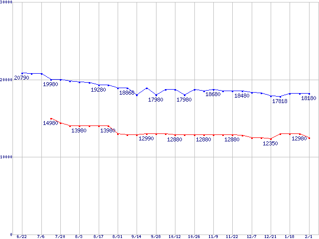 WD Raptor (10000rpm,Serial ATA/150,16MB,TLER)の最安値推移