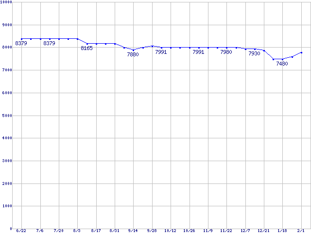 | WD Caviar[Special Edition] (7200rpm,Ultra ATA/100,8MB)の最安値推移 | | | (2006年6月22日~2007年2月1日) |
