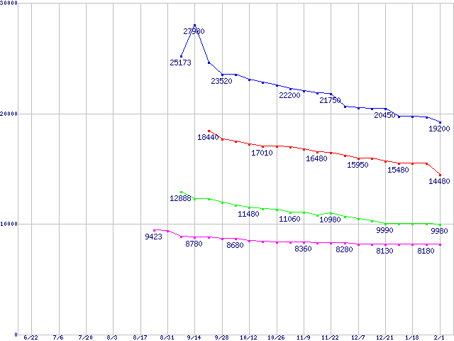 DiamondMax 10 (7200rpm,Serial ATA II,3Gbps)の最安値推移