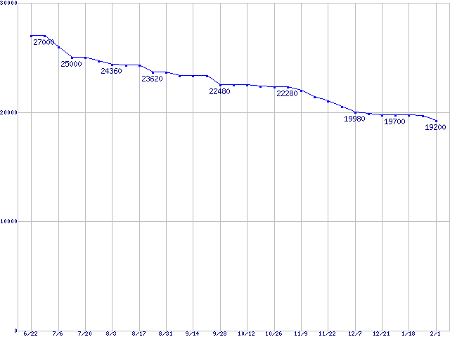 Deskstar T7K500 (7200rpm,Serial ATA II/3Gbps)の最安値推移