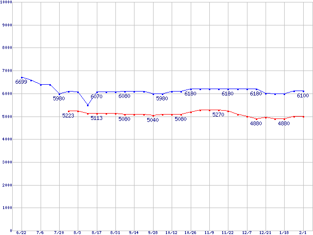 Deskstar 7K160 (7200rpm,Ultra ATA/133,8MB)の最安値推移