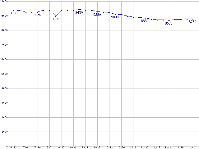 | MaXLine III (7200rpm,16MB,Ultra ATA/133,RoHS指令準拠)の最安値推移 | | | (2006年6月22日~2007年2月1日) |