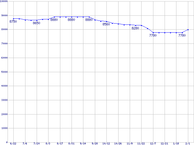 | DiamondMax 10 (7200rpm,Ultra ATA/133,RoHS指令準拠)の最安値推移 | | | (2006年6月22日~2007年2月1日) |