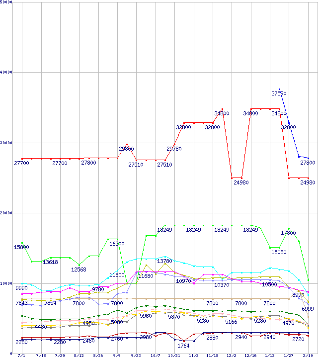 メモリ主要製品の最安値推移
