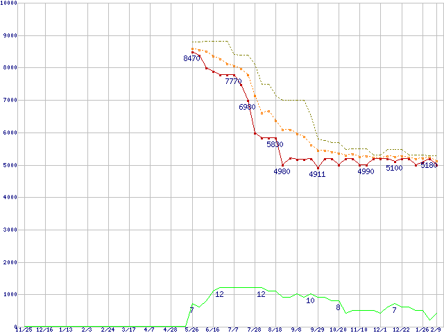 | Sempron 2800+ (1.6GHz,L2 128KB)の価格推移 | | | (2005年11月25日~2007年2月9日) |