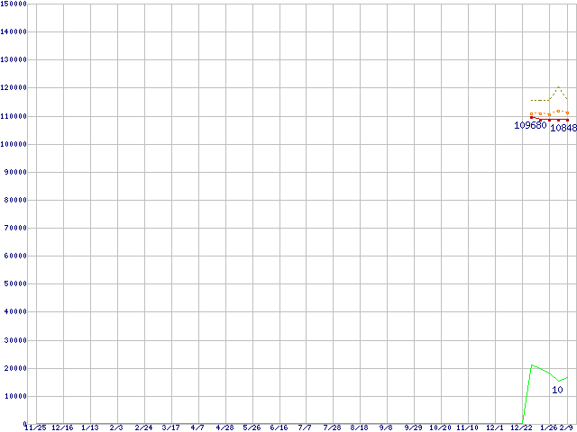 | Core 2 Quad Q6600 (2.40GHz,L2 4MB×2)の価格推移 | | | (2005年11月25日~2007年2月9日) |