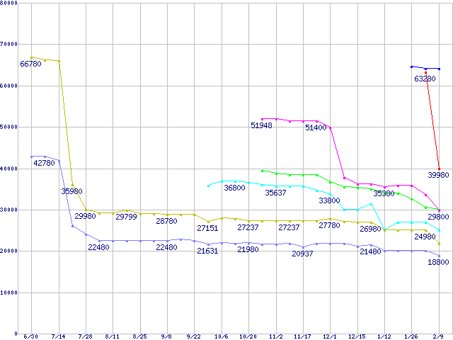 Socket F (FSB 1000MHz,Dual Core,L2 1MB×2)の最安値推移
