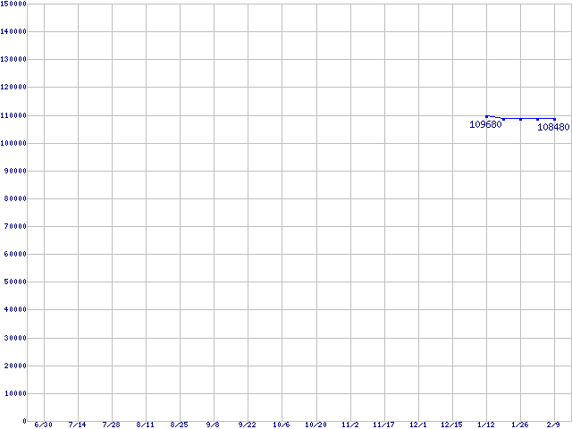 | LGA775 (FSB 1066MHz,Quad Core,EM64T対応,TDP 105W)の最安値推移 | | | (2006年6月30日~2007年2月9日) |
