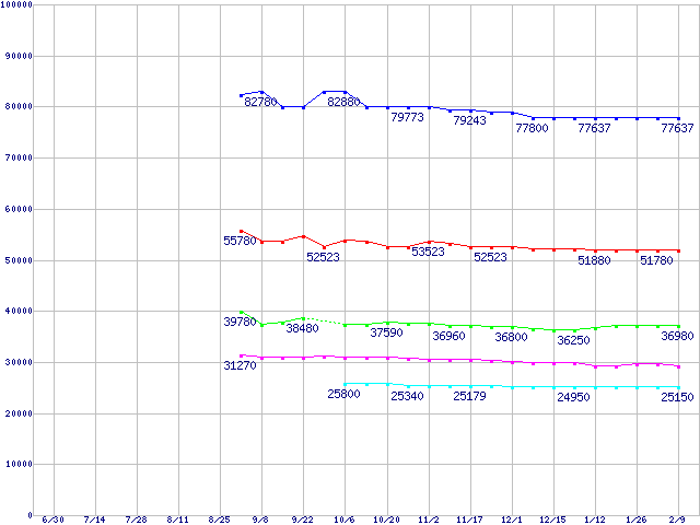 | Core Duo向けSocket 478 (FSB 667MHz,Dual Core,EM64T対応)の最安値推移 | | | (2006年6月30日~2007年2月9日) |