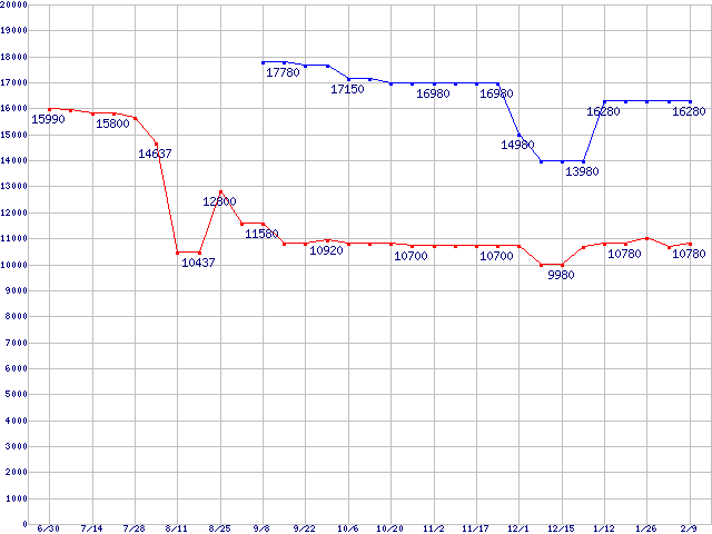 Core Duo向けSocket 478 (FSB 533MHz,L2 1MB)の最安値推移