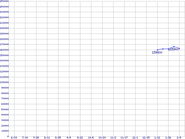 | LGA771(FSB 1333MHz,Quad Core,L2 4MB×2,TDP 120W)の最安値推移 | | | (2006年6月30日~2007年2月9日) |