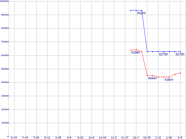LGA771(FSB 1333MHz,Quad Core,L2 4MB×2,TDP 80W)の最安値推移