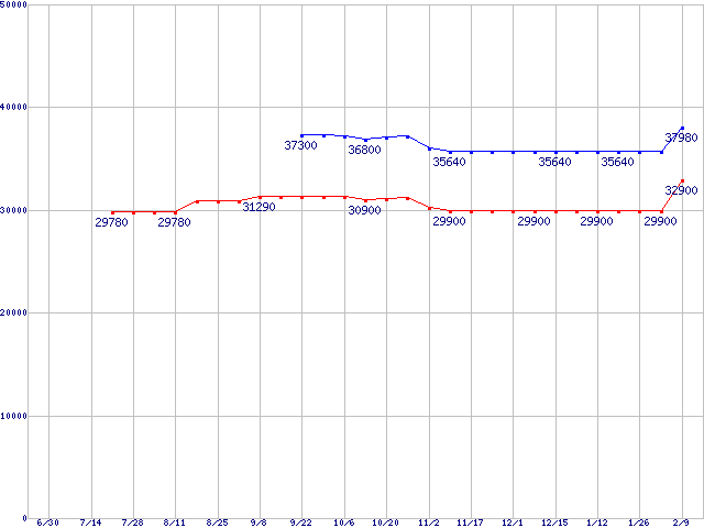 LGA771(FSB 1333MHz,Dual Core,L2 4MB)の最安値推移