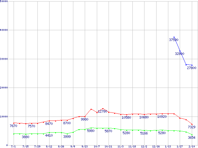 PC2-6400(DDR2-800) DDR2 SDRAM DIMMの最安値推移