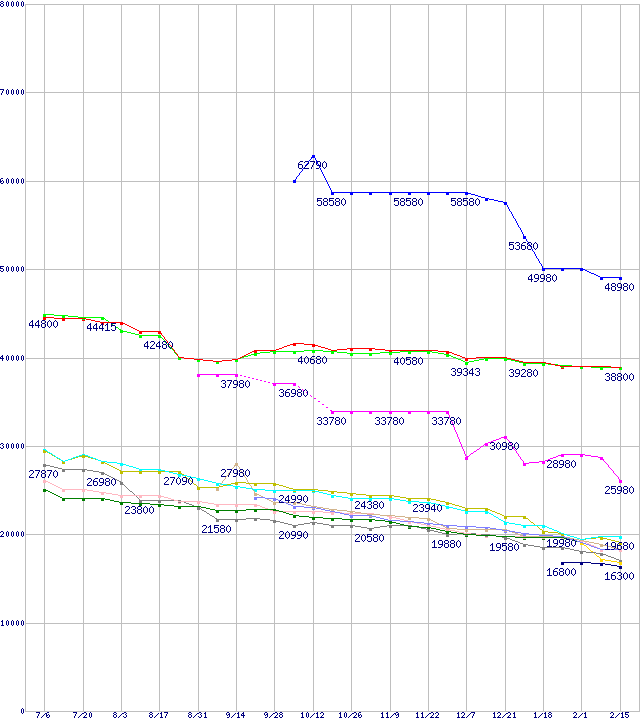 | HDD 500GB以上の最安値推移 | | | (2006年7月6日~2007年2月15日) |