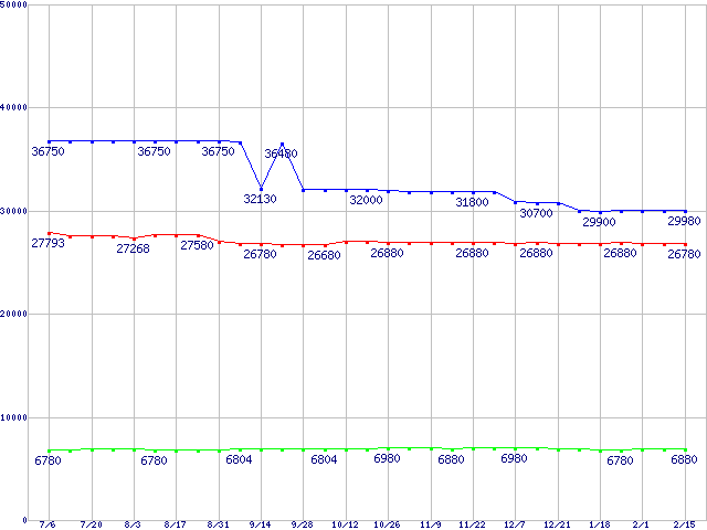 HDD 160~200GB未満の最安値推移
