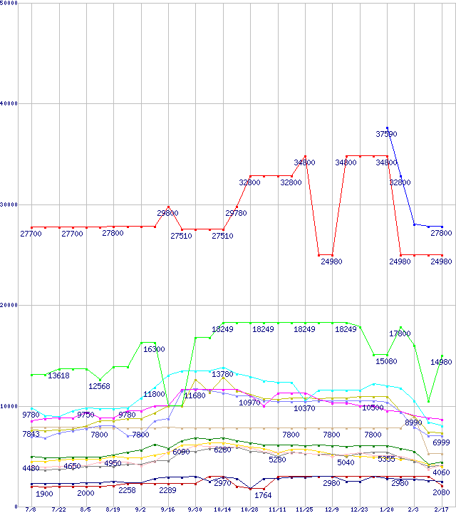 PC2-4200*(DDR2-533) DDR2 SDRAM DIMMの最安値推移