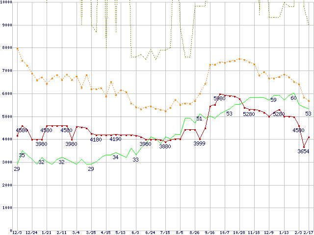 PC2-5300(DDR2-667) DDR2 SDRAM DIMMの最安値推移