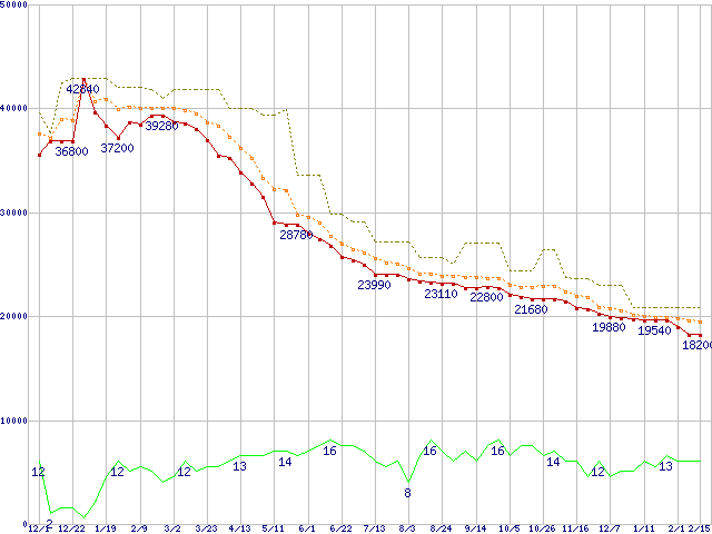 | HDS725050KLAT80 (500GB,8MB)の価格推移 | | | (2005年12月1日~2007年2月15日) |