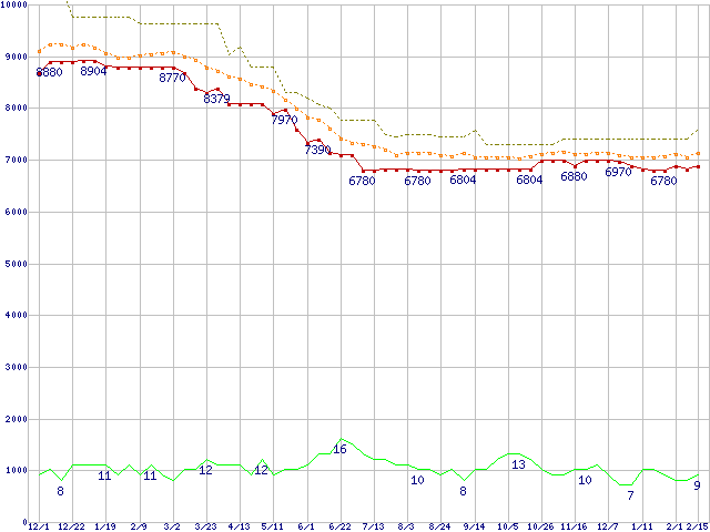 | ST3120814A (120GB,8MB)の価格推移 | | | (2005年12月1日~2007年2月15日) |