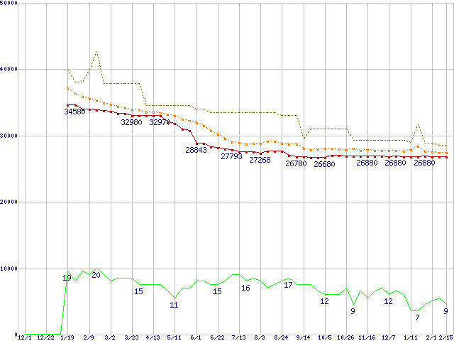 | WD1500ADFD (150.0GB)の価格推移 | | | (2005年12月1日~2007年2月15日) |