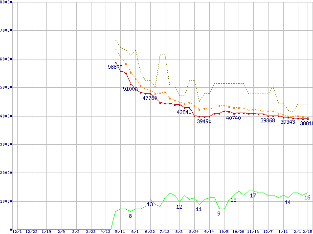 | ST3750640AS (750GB,16MB)の価格推移 | | | (2005年12月1日~2007年2月15日) |