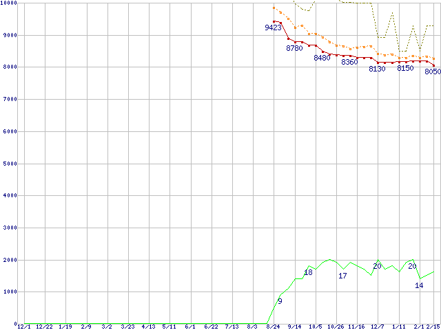 | HDT725025VLA380 (250GB,8MB)の価格推移 | | | (2005年12月1日~2007年2月15日) |