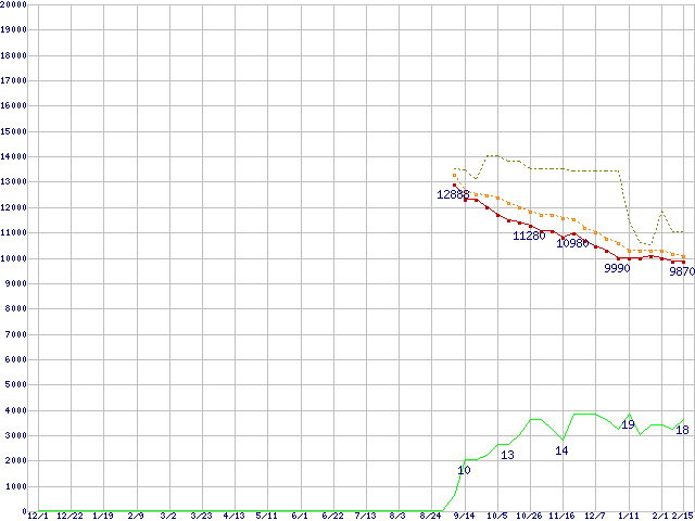| HDT725032VLA360 (320GB,16MB)の価格推移 | | | (2005年12月1日~2007年2月15日) |