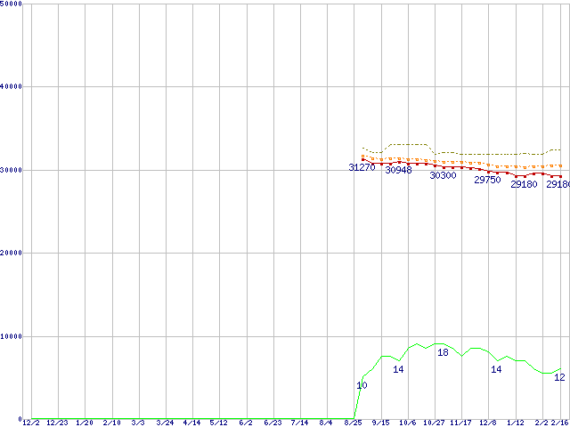 | Core 2 Duo T5600 (1.83GHz,L2 2MB)の価格推移 | | | (2005年12月2日~2007年2月16日) |